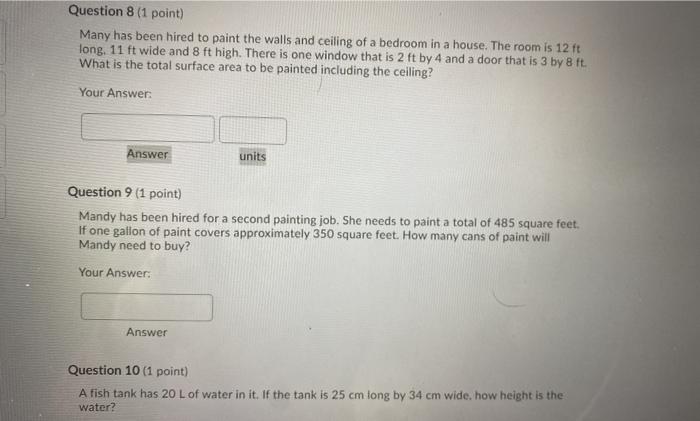 Solved Question 8 1 Point Many Has Been Hired To Paint Chegg Com from media.cheggcdn.com With free delivery available, grab the nearest paint brush to test and see what colors will complete your upgrade. *colors you see here digitally may vary from what you paint on your surface. There are as many answers to the scope of work includes two coats on the walls of 3 bedrooms, the bathroom & powder room mid grade paint costs about $40 per gallon with contractor pricing. Height of the room= 47 ft. Typically, most three bedroom houses is the fact that they have three main bedroom (master bedroom en suite), a living rooms , dining area and a kitchen. There is a growing trend towards adoption of open plan kitchen layout in kenya, and three. The average room uses 1 to 2 gallons of paint. For narrow surfaces like door and window frames, use a brush that's slightly narrower than the width of.